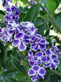 This blue flowering shrub has petals tinged white and flowers in bunches that hang like jewels on the shrub. A fast growing shrub that easily grows to 2.5 meters in diameter it is also an idea shrub to shape and hedge in a small garden. The emerald green foliage will grow compact if cut regularly and also provide a screen if needed. Duranta has the common name of “Forget me not” and when you see this Duranta Sapphire Shower in flower you won’t!